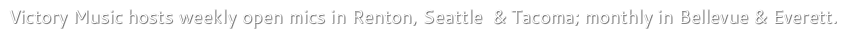 What's New Whether you're just stepping onto a stage for the first time or you are a seasoned performer testing your new song, Victory Music acoustic open mics are the ideal environment to bring out your best game.